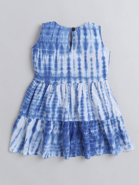 The Magic Wand Attractive Tie & Dye Comfortable Tiered Dress For Girls With Bow Blue