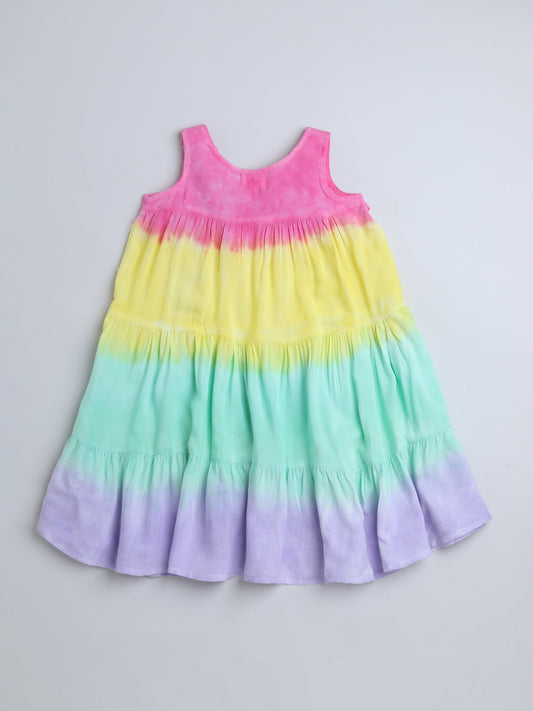 The Magic Wand Sleeveless Tie and Dye Tiered Dress Multi