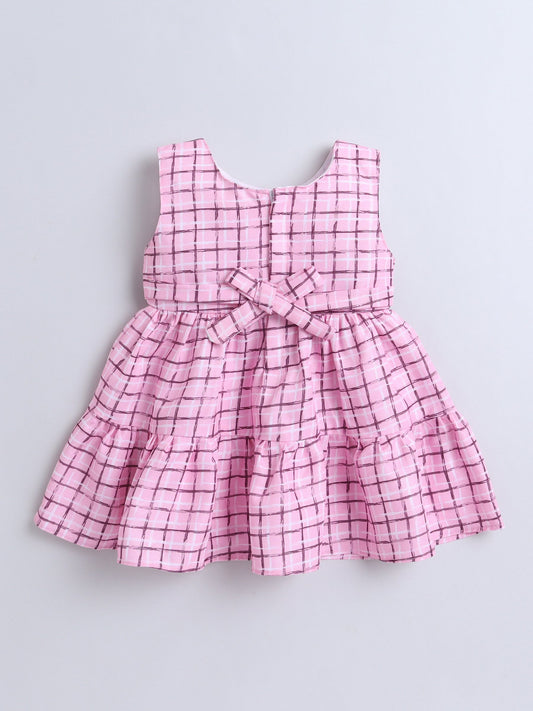 The Magic Wand Sleeveless Chex Printed Tiered Dress - Pink
