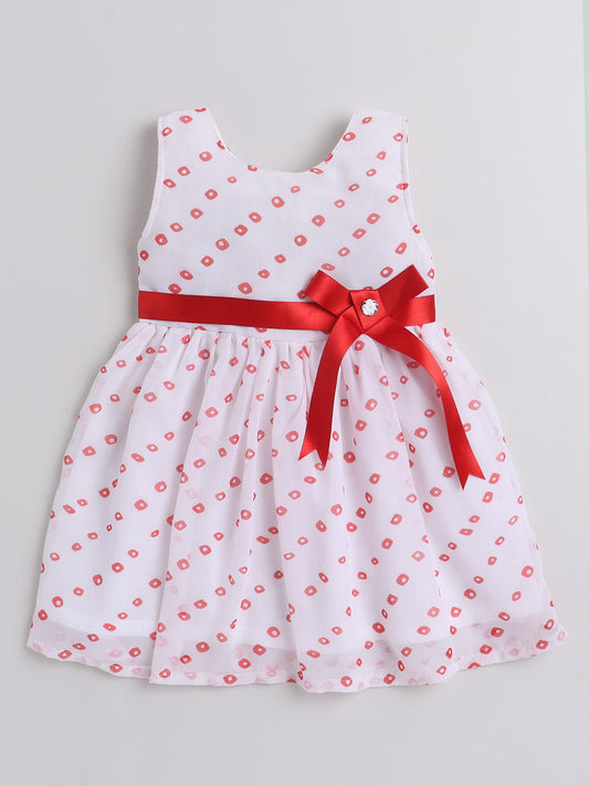 Xmas Square Dots Printed Sleeveless Dress With Bow For Girls-White,Red