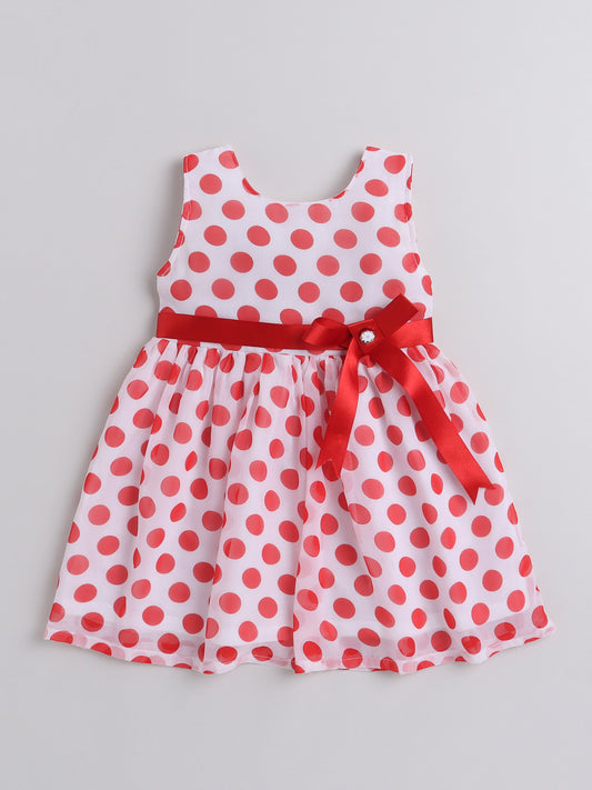 Xmas Big Polka Dots Printed Sleeveless Dress With Bow For Girls-White,Red