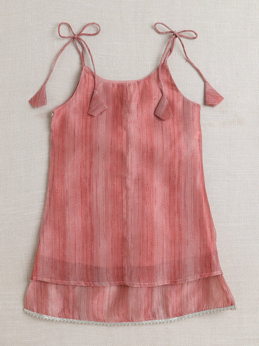 Chanderi Sleeveless Striped Lace Embellished Kurta & Salwar Set - Maroon