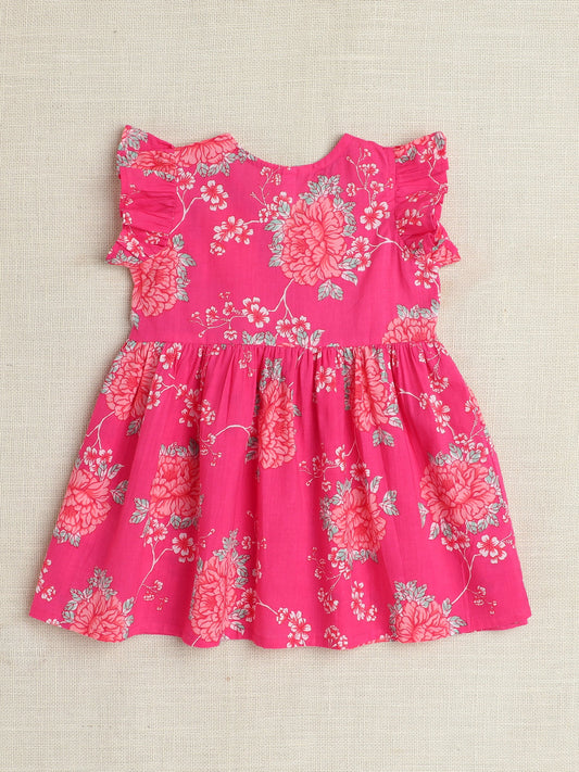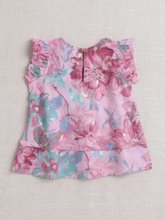 Cotton Frilled Sleeves Floral Printed & Lace Embellished Coordinating Top & Salwar Set - Onion Pink
