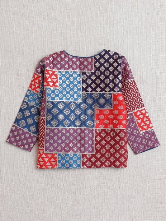 All Over Print Cotton Half Sleeves Jacket- Navy Blue