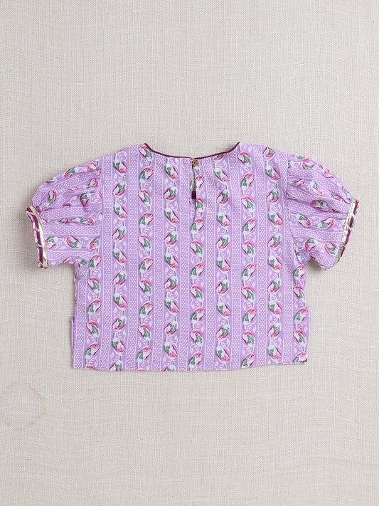 Cotton Half Sleeves Floral Printed & Lace Embellished Lehenga Choli With Dupatta Set - Purple