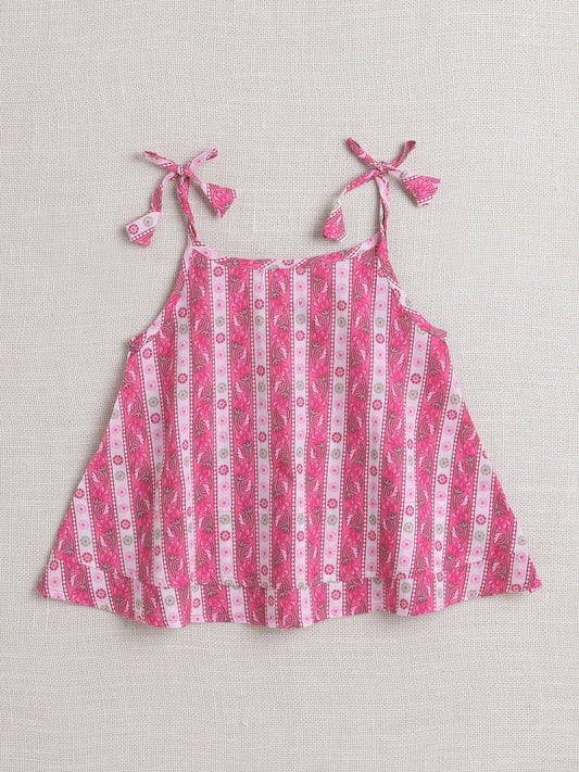 Cotton Sleeveless Floral Printed & Lace Embellished Kurta & Dhoti Set - Pink