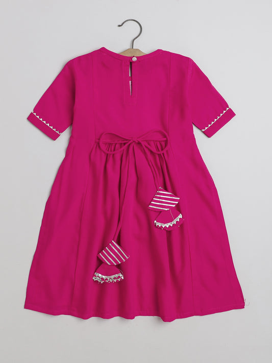 Elbow Sleeves Nyra Cut Gota Detailed Tassled Kurta With Pants-Fuchsia
