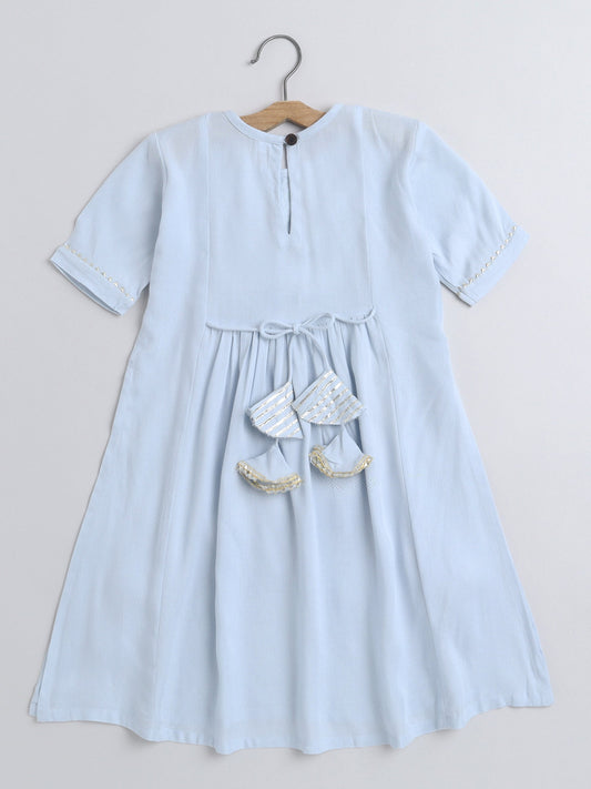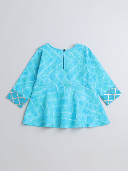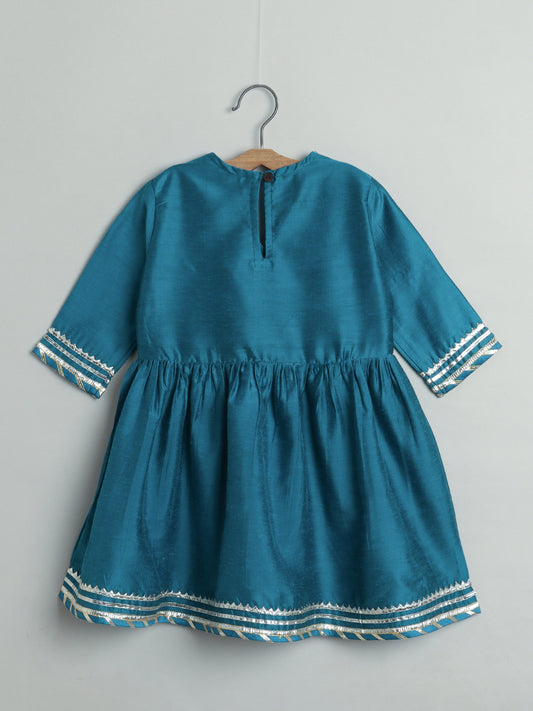 Floral Print 3/4th Sleeves Gota Lace Kurta & Balloon Pant Set-Blue
