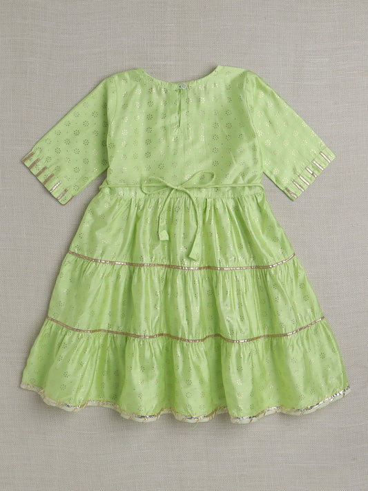 Half Sleeves Lace Embellished Floral Motif Foil Printed Coordinating Kurta & Salwar Set - Green
