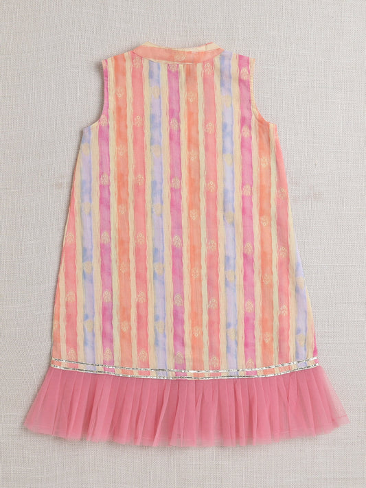 Sleeveless Strip Print Kurta With Pyjama Set - Peach