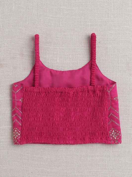 Bootie Printed Lace Embelished Top and Pant Set For Girls Fuchsia