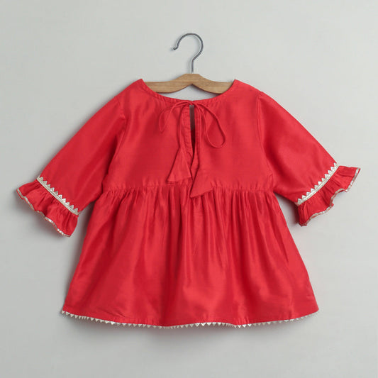 Lace Embelished Full Sleeves tassles Kurta with Ballon Pants-Red
