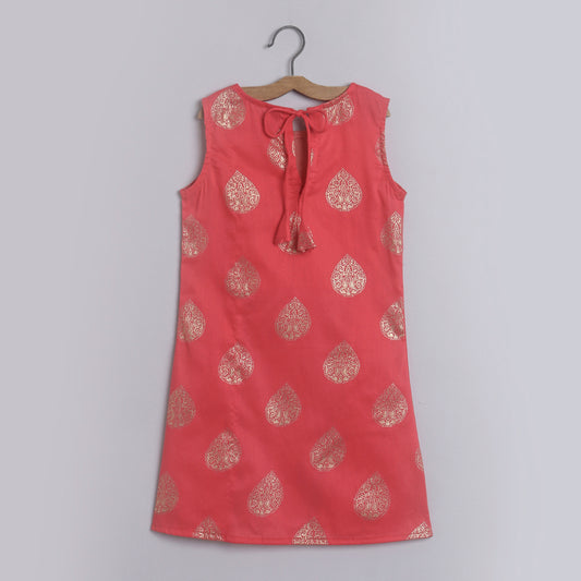 Indo Western Lace Embelished Ethnic Motif Printed Sleeveless Kurta and Sharara Set-Peach