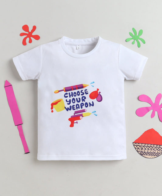 The Magic Wand Holi Festival Printed Colourful Holi Special T-shirts For Kids-White