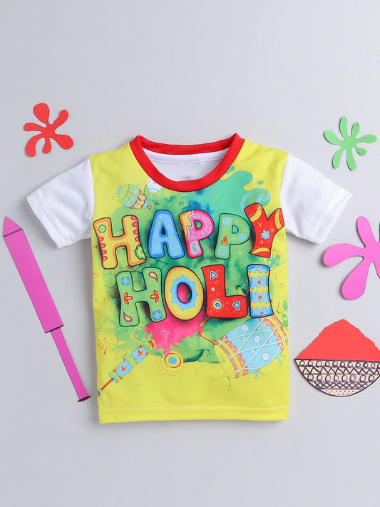 The Magic Wand Happy Holi Printed Colourful Holi Special T-shirts For Kids-Yellow