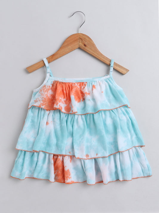 Tie & Dye Printed Cotton Sleeveless Tiered Tops - Blue ,Orange