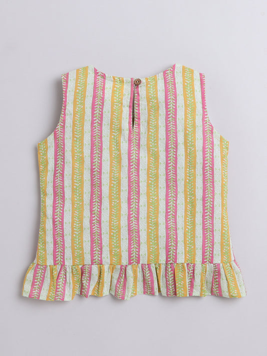 Cotton Stripes Textured Ruffle Sleevless Top - Yellow