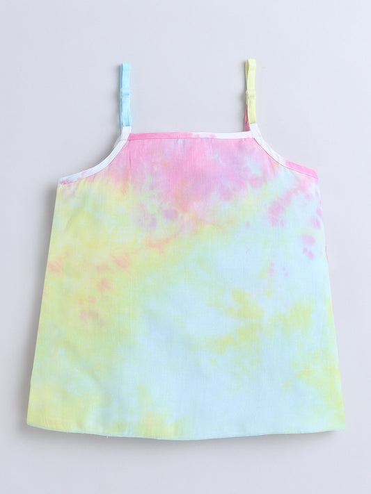 Tie & Dye Printed Cotton Sleeveless Tiered Tops - Multi