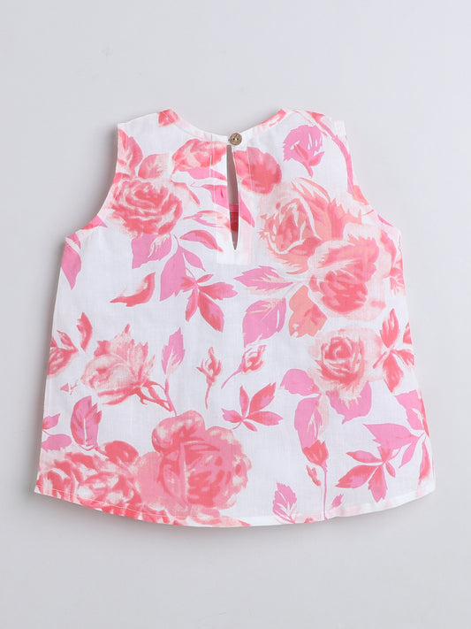 The Magic Wand Cotton Sleeveless Floral Printed Top & Shorts Set-Off White