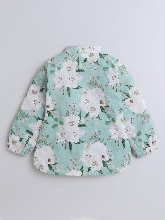 Floral Print Cotton Full Sleeves Loungewear Set-Mint