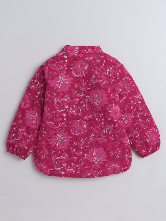 Floral Print Cotton Full Sleeves Loungewear Set - Fushcia