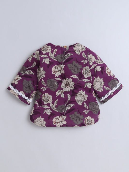 Floral Printed Cotton Three Forth Sleeves Lounge Wear Night Suit Set - Purple