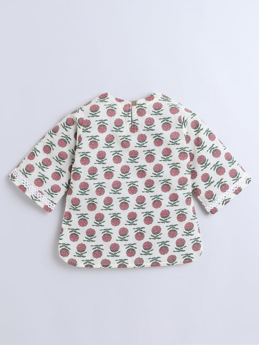 3/4th Sleeves Cotton Floral Printed Top With Pant Lounge Wear Set Maroon