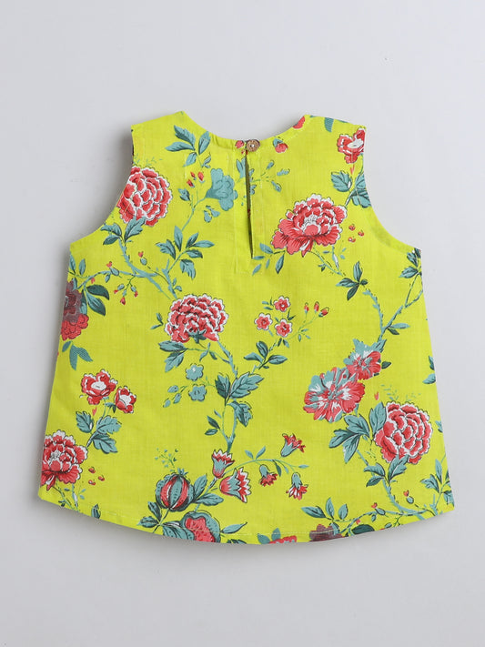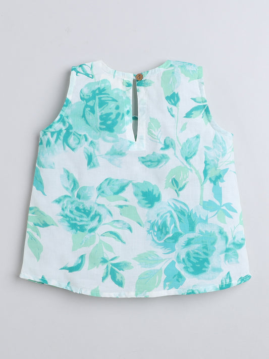 Floral Top and Shorts Cotton Sleeveless Night Wear Lounge Wear Set - Green