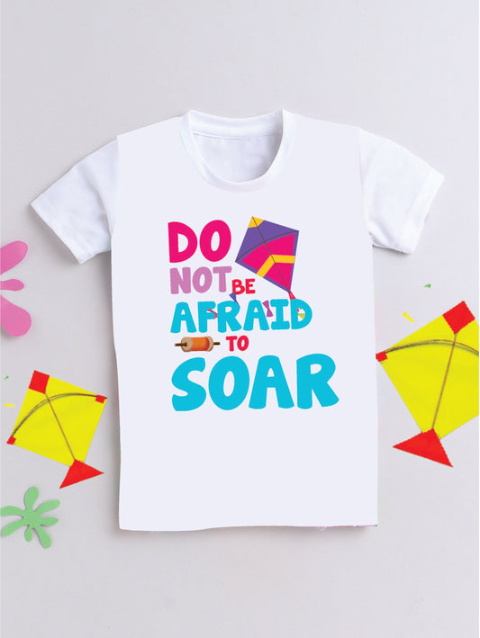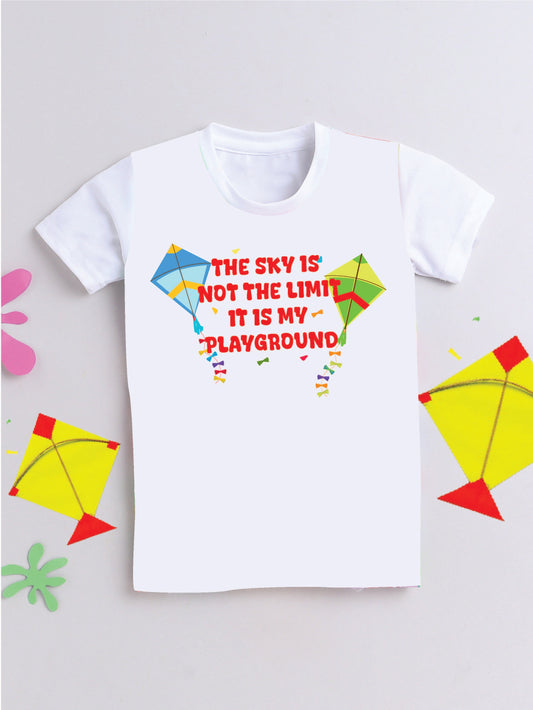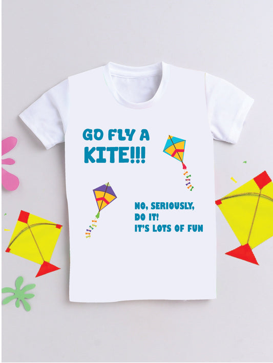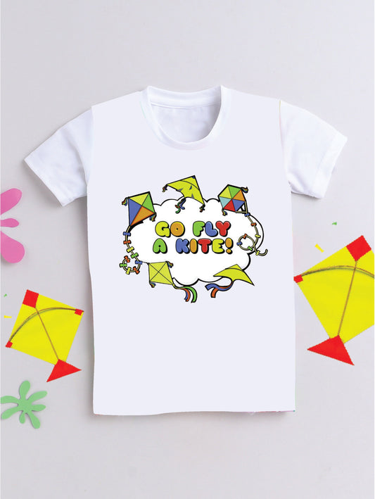 Makar Sankranti Festival Theme Go Fly A Kite Printed Colourfull T-shirts -White