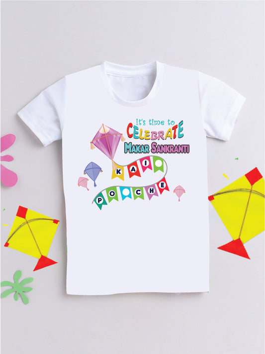 Makar Sankranti Festival Theme Celebreate Makar Sankranti Printed Colourfull T-shirts -White
