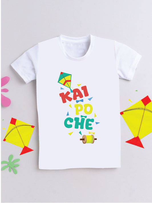 Makar Sankranti Festival Theme Kai Po Che Printed Colourfull T-shirts -White