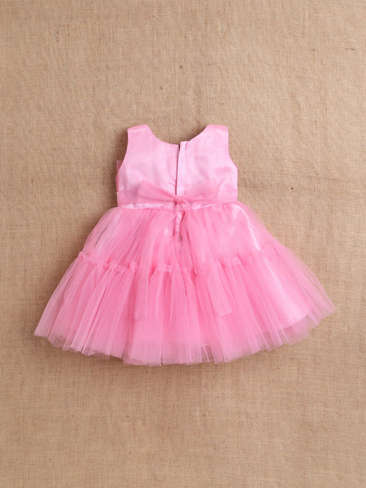 Sleeveless Net Bouquet Yoke Party Dress - Pink