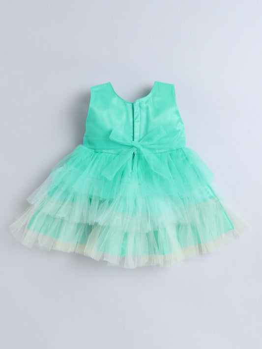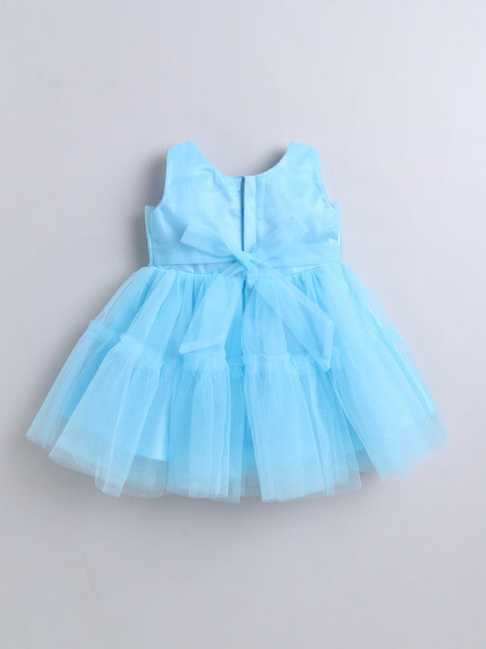 The Magic Wand Sleeveless Big Bow Embellished Net Party Dress - Blue