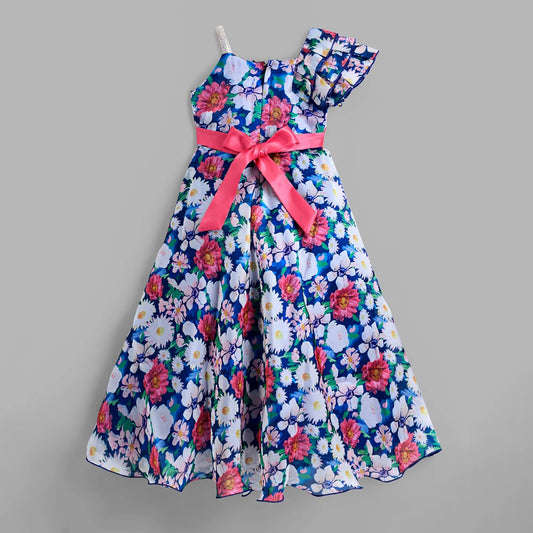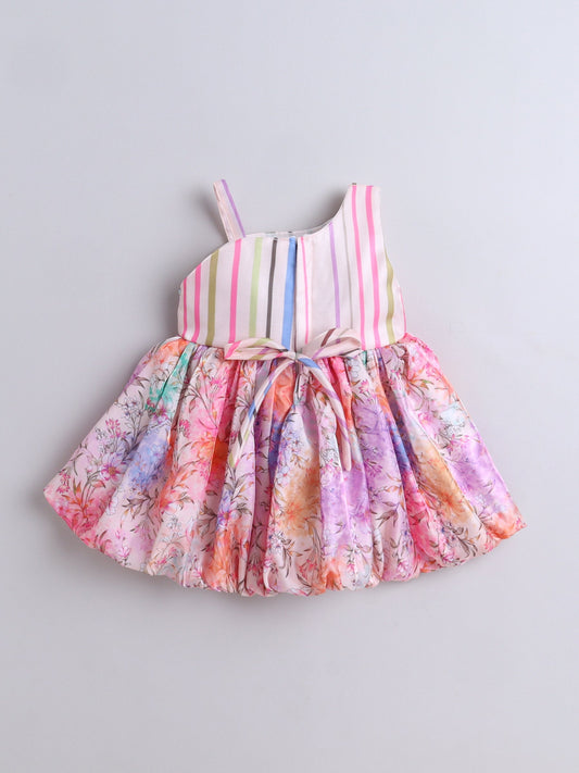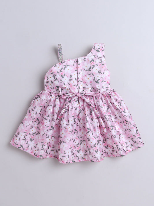 The Magic Wand One Shoulder Bow Applique Floral Printed Dress - Pink