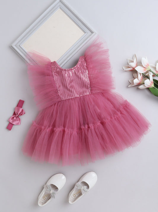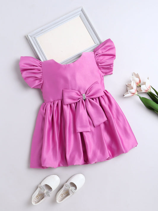Flutter Sleeves Shimmer Party Dress Onion Pink