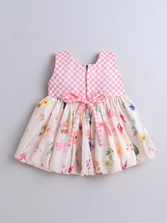 The Magic Wand Sleeveless Bow Applique Floral Printed Dress- Peach