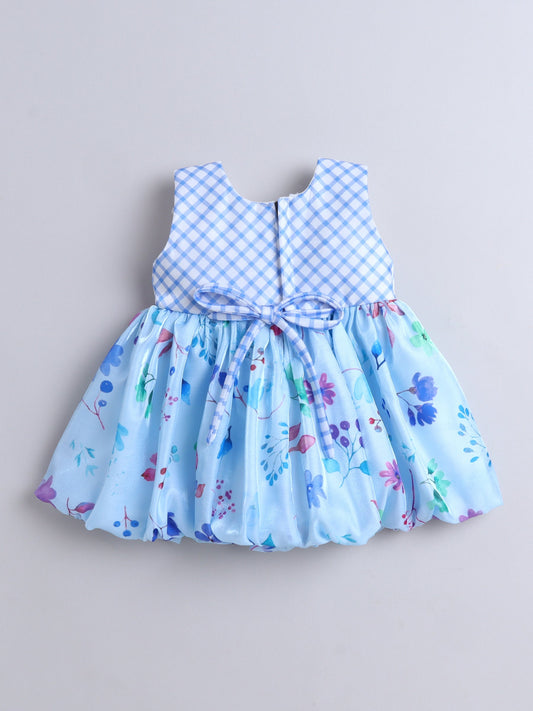 The Magic Wand Sleeveless Bow Applique Floral Printed Dress- Blue