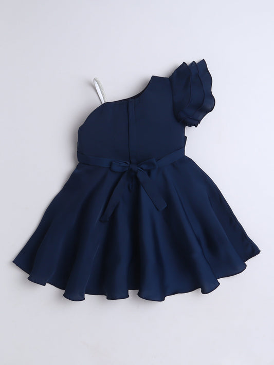 Solid One Shoulder Party Dress -Navy Blue