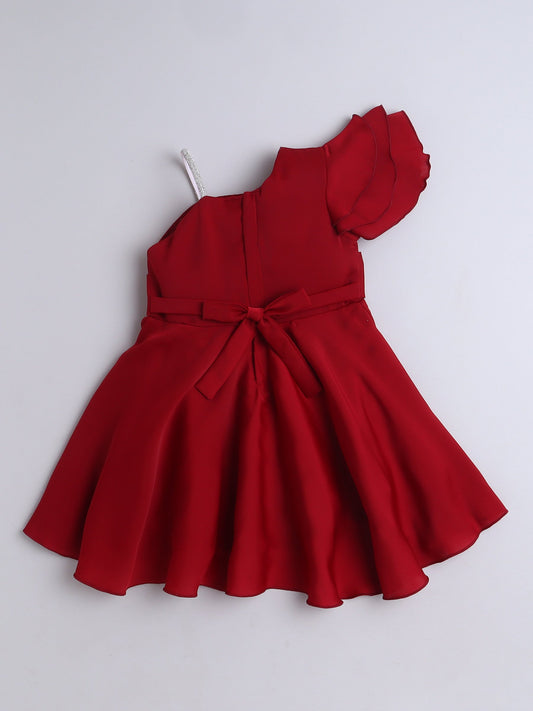 Solid One Shoulder Party Dress - Red