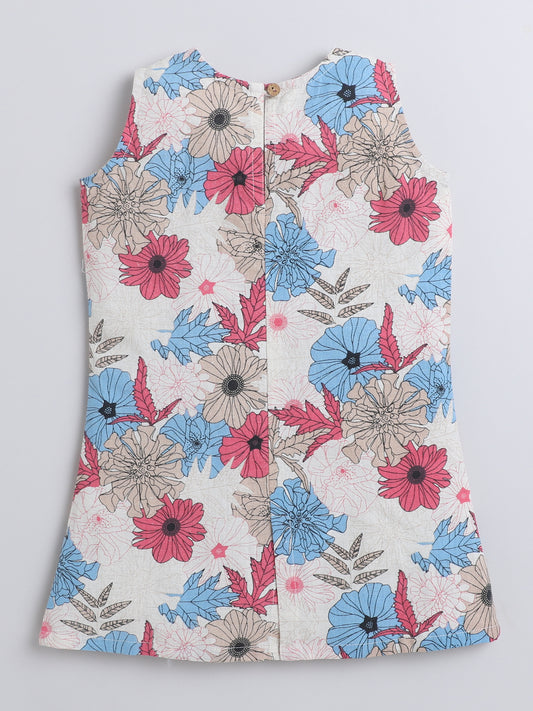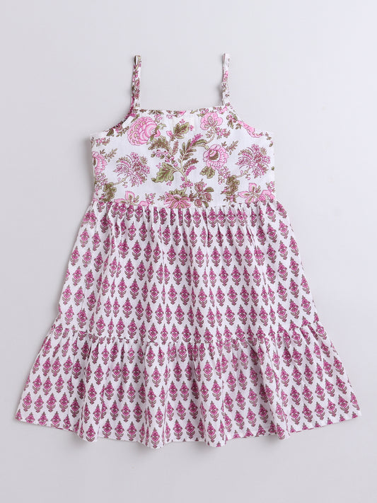 Floral Printed Sleeveless A-Line Cotton Dress- Pink