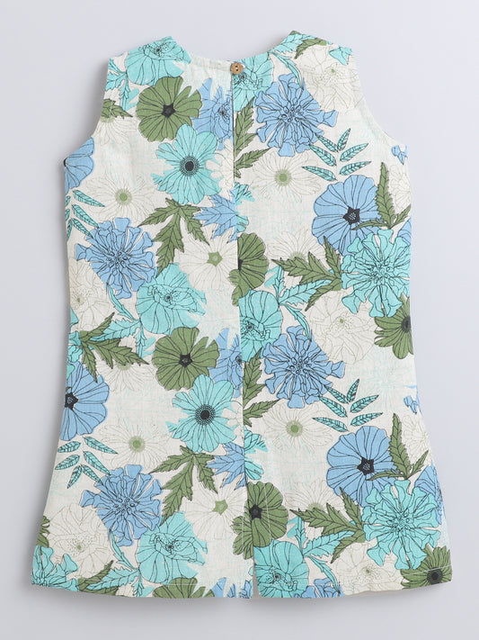Floral Printed Sleeveless A-Line Cotton Dress- Green