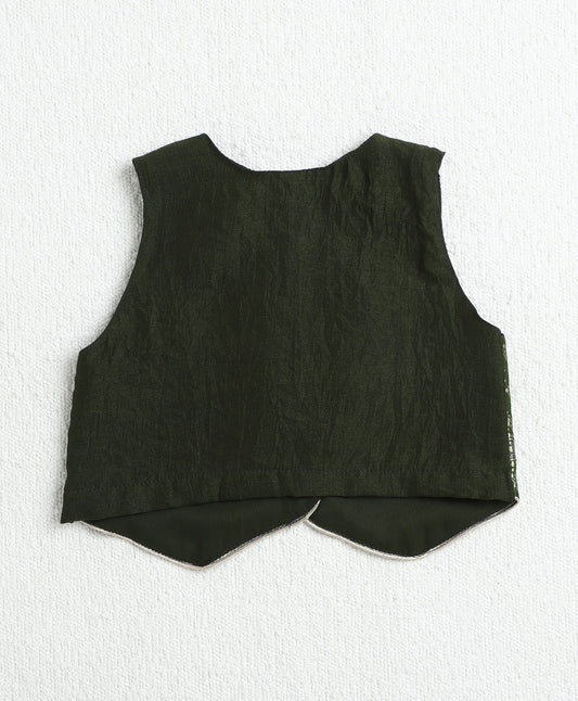 Jacquard Woven Sleeveless Waist Coat Top with Palazzo Set-Olive Green