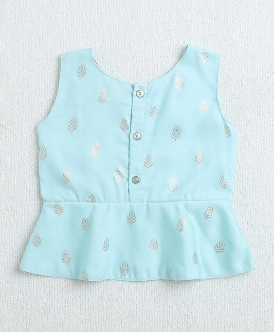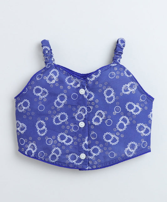 Woven Sleeveless Foil Printed Top and Co-Ordinating Pant Set- Blue