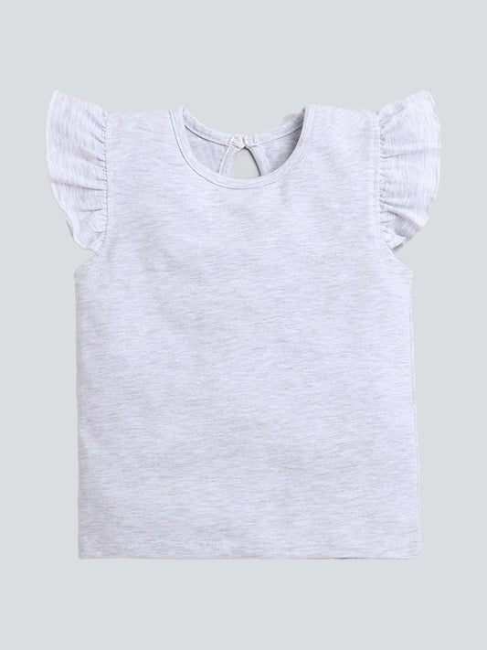 Cap Frill Sleeves Solid Top With Paisley Printed Pants - Grey & Red