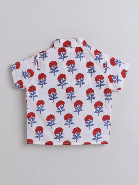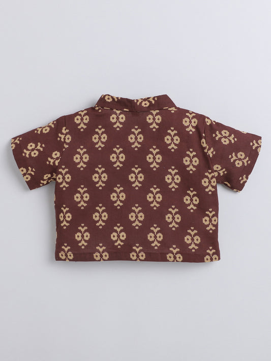 Sustainable Cotton Floral Printed Short Sleeves With Collar Co-ord Sets -Maroon