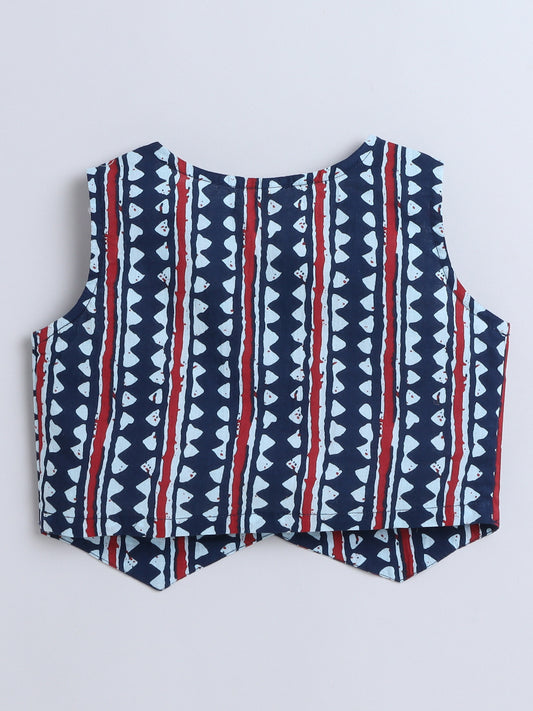 Sustainable Stripes Printed Sleeveless Waist Co ord Sets-Indigo Blue