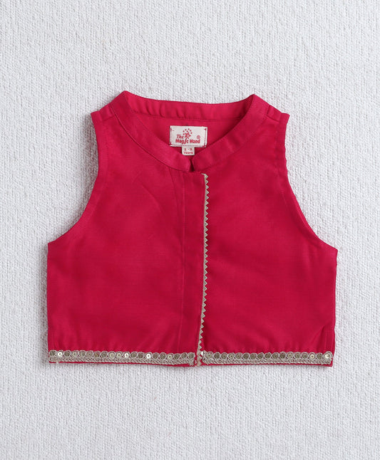 The Magic Wand Woven Incut Solid Top with Foil Plazzo Set- Fuchsia
