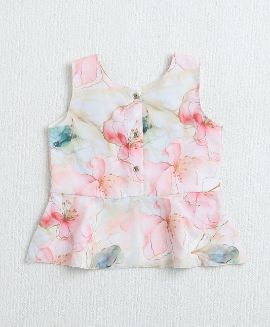 Woven Sleeveless Floral Printed Top and Co-Ordinating Pant Set- Peach