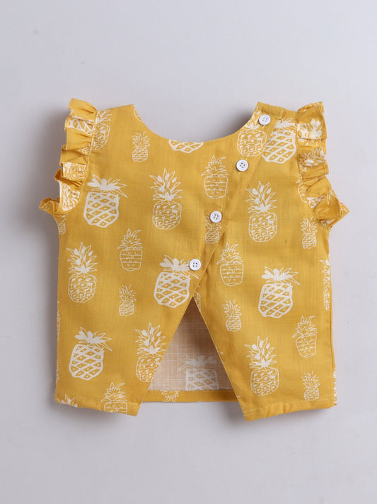 The Magic Wand Sleeveless Pineapple Printed Frill Detail Top & Shorts Set- Musturd