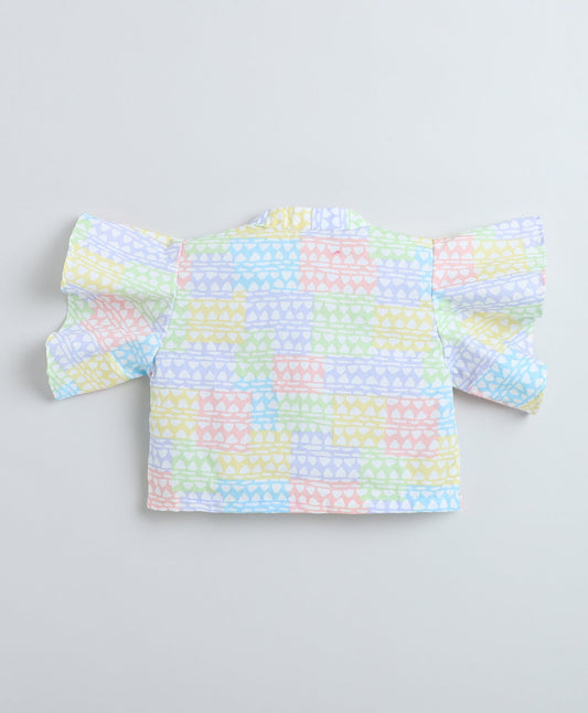 Cotton Woven Frill Sleeves All Over Printed Collar Top and Co-Ordinating Pant Set- Multi Color